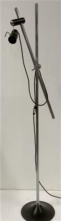 Lampada da terra con braccio regolabile in acciaio faretti e base in metallo verniciato nero. Italia, anni '70. (h cm 153) (lievi difetti)