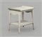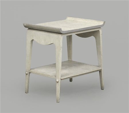 Tavolino in legno verniciato bianco e argento a due ripiani. Italia, secolo XX. (cm 63x72,5x53) (difetti e restauri)