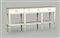 Consolle a tre cassetti e un ripiano a giorno in legno verniciato bianco e azzu