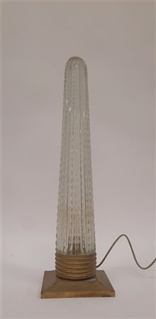 Lampada da tavolo con base in bronzo, diffusore in vetro stampato ad effetto bugnato. Italia, anni '30. (h cm 54,5) (gravi difetti)