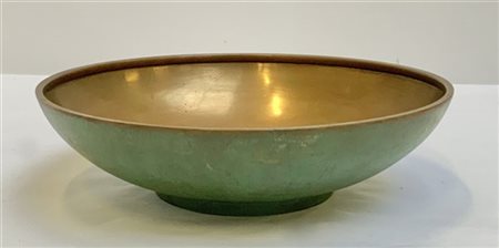 Centrotavola in rame smaltato verde nella parte esterna, marcato nel cavetto. (d cm 24) (lievi difetti)