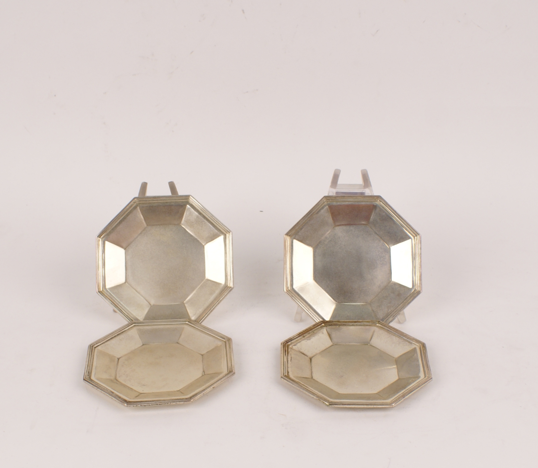 DODICI PIATTINI PANE IN ARGENTO manifattura italiana di forma ottagonale, cm.11 1135 gr.