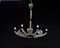 Lampada a sospensione a sei luci in ottone e vetro trasparente incolore con braccia costolate e foglie. Italia, anni '50. (h cm 66; d cm 68) (lievi difetti)