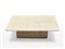 Tavolo da salotto con piano in travertino e base rivestita in lana. Italia, anni '70. (cm 120x28,5x120) (lievi difetti)