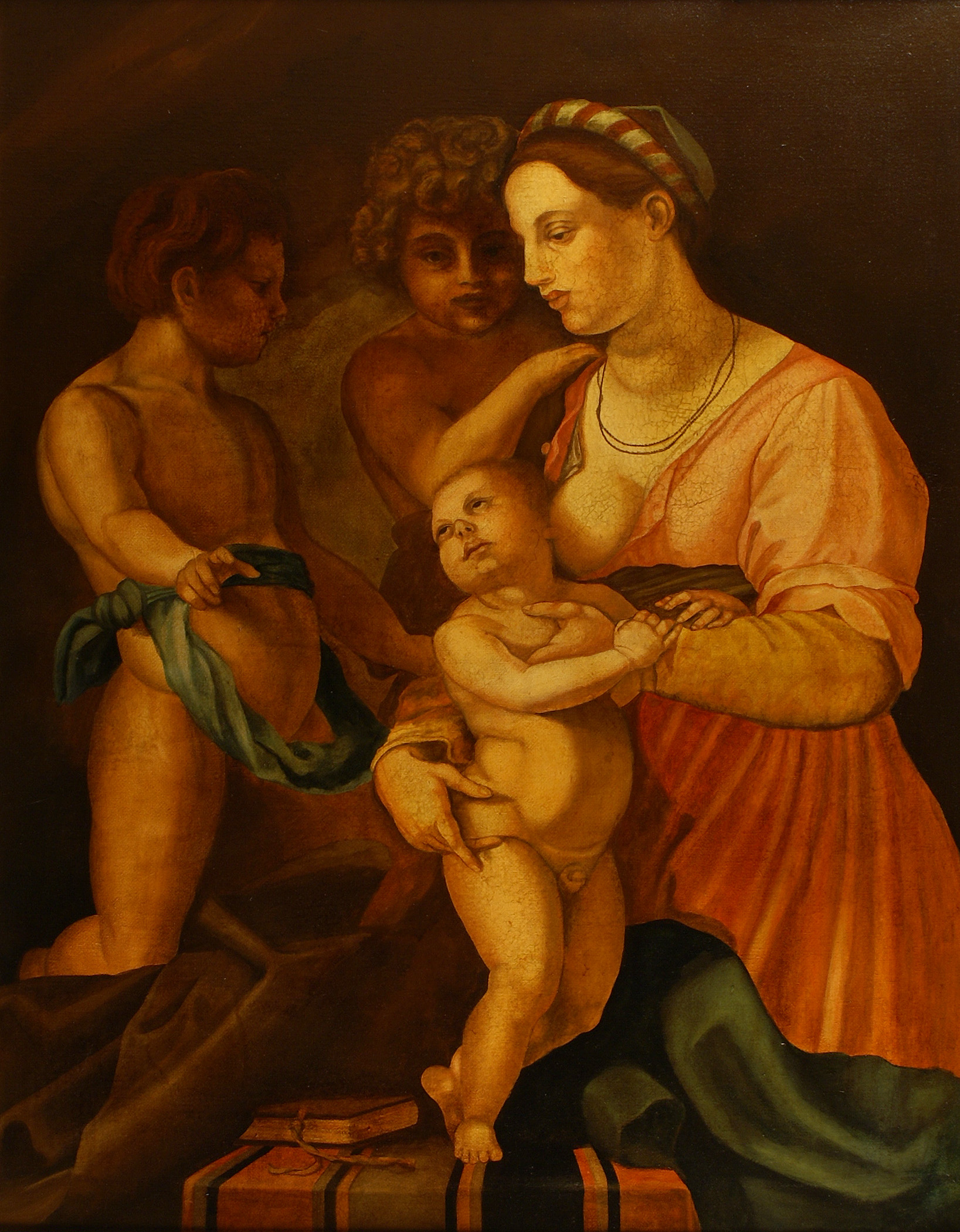 SCUOLA ITALIANA XX Sec. Maternità, olio su tela, entro cornice 115x90 cm.