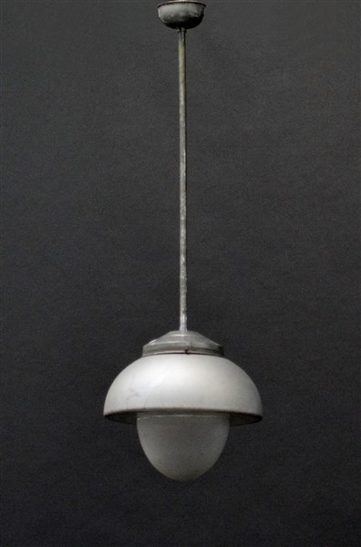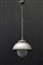 Lampada a sospensione con struttura in metallo e paralume in vetro trasparente incolore, verniciato argento e satinato. Italia, anni '50. (h cm 95; d cm 28) (lievi difetti)