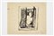 Disegno di figura femminile alla finestra. Il volto è identificabile con uno dei numerosi autoritratti dell'autore. Portofino, anni '50. Inchiostro nero su carta da spolvero. Firmato a penna in basso a destra. (cm 21,2x25) (lievi difetti)