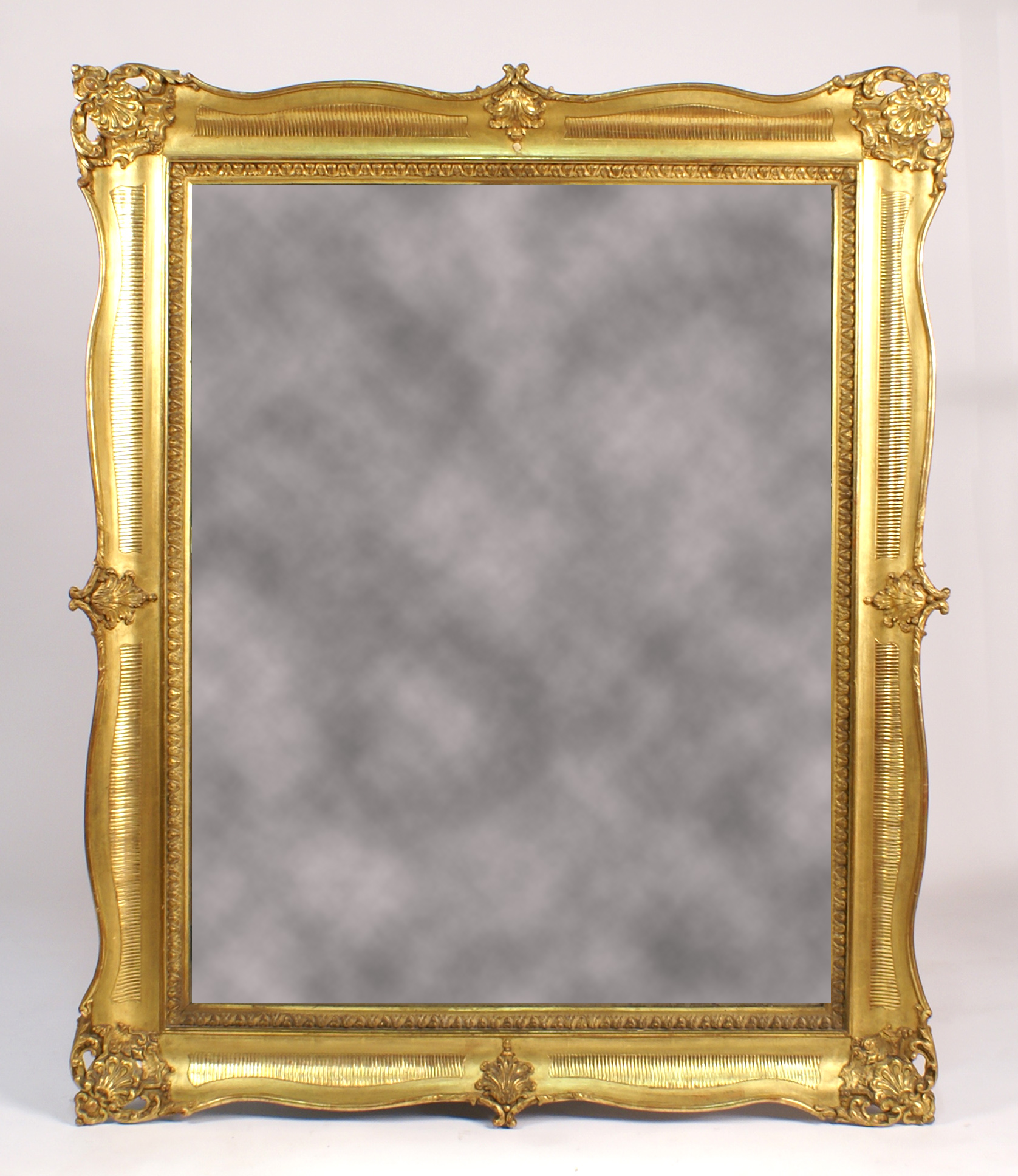 SPECCHIERA RETTANGOLARE XIX Sec. cornice sagomata in legno dorato ed intagliato 150x125 cm.