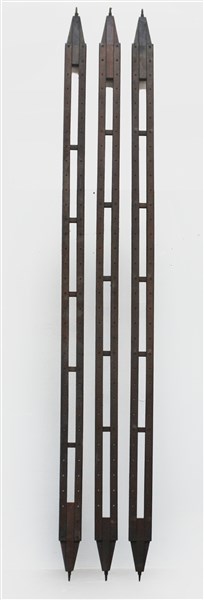 Tre montanti modello "LP7". Produzione Poggi, Pavia, anni '50. legno di teak. (h cm 303) (lievi difetti)