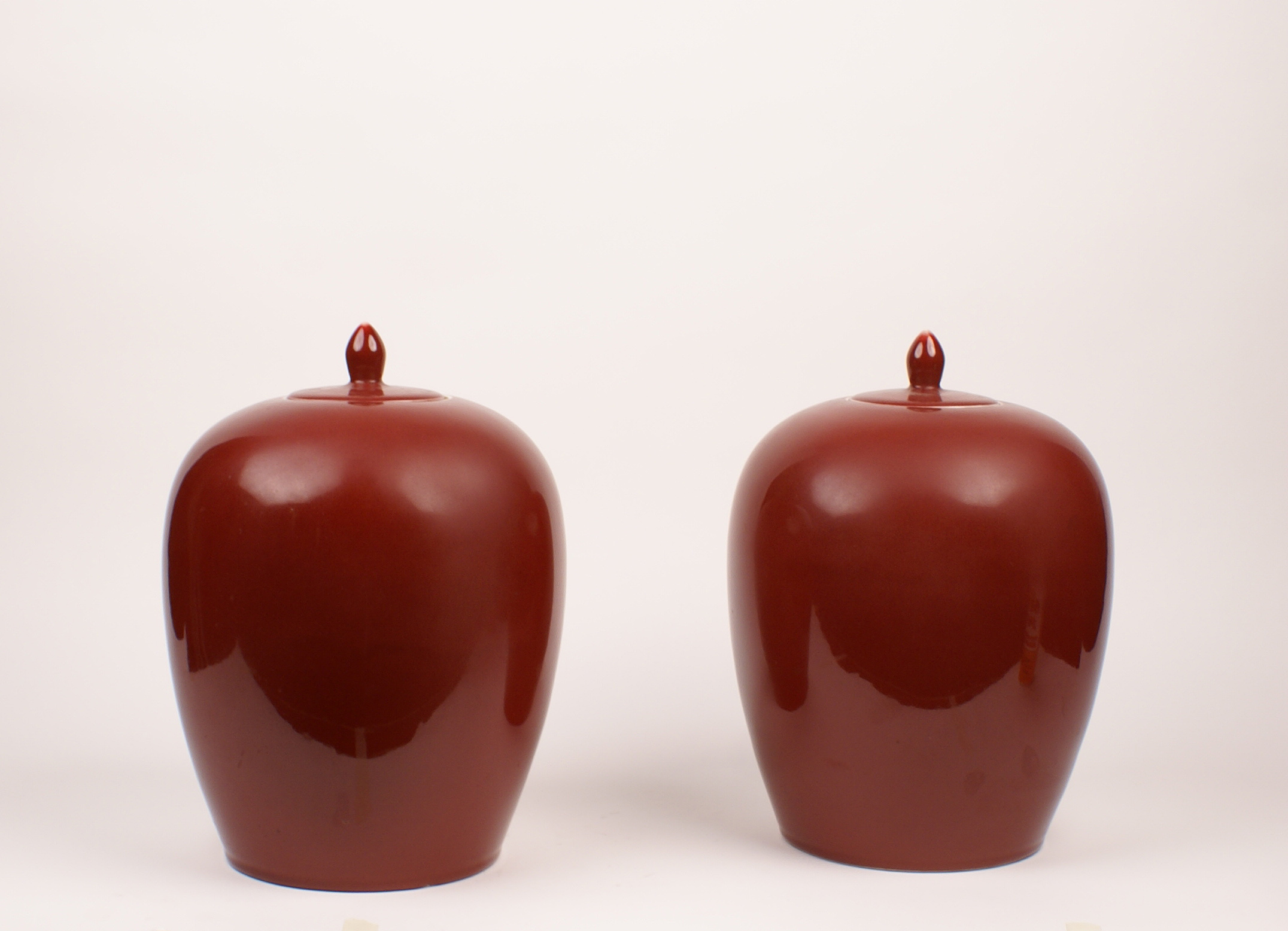 COPPIA DI POTICHES IN PORCELLANA MONOCROMA SANGUE DI BUE Cina XIX Sec. h. 34 cm.