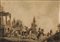 SCUOLA FIAMMINGA XIX Sec. Falconiere con cavalieri, disegno entro cornice...