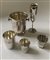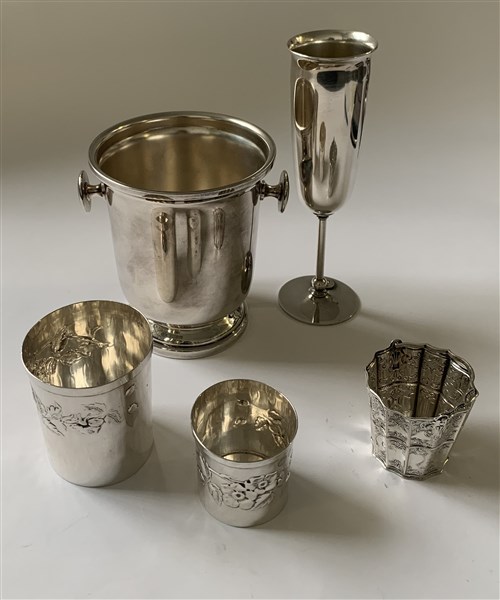 Lotto composto da due bicchieri Brandimarte e un secchiello in argento (g 195) unito a due oggetti diversi in metallo argentato