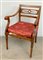 Poltrona in noce con cartella intagliata, braccioli mossi, gambe tornite. Secolo XIX (difetti)