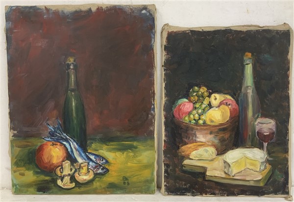 Lotto di due dipinti ad olio su tela raffiguranti nature morte, misure diverse, uno siglato e datato '68