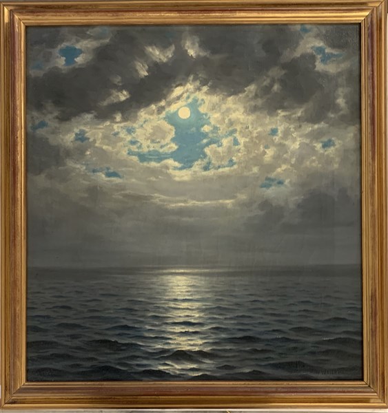 "Chiaro di luna" olio su tela (cm 58x54) Firmato in basso a destra. In cornice