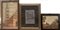 Lotto composto da un disegno raffigurante basilica, un collage raffigurante paesaggio ed un ricamo su seta, in cornici (difetti)