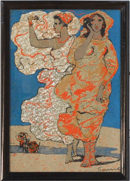 Salvatore Fiume "Somale" serigrafia su broccato cm 70x49 Firmata in basso a des