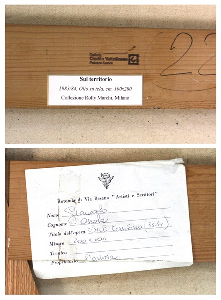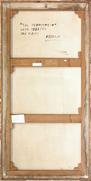 Giancarlo Ossola "Sul territorio", 1983/84 olio su tela cm 200x100 firmato titol
