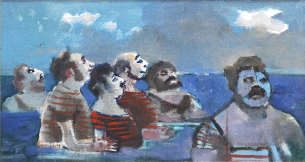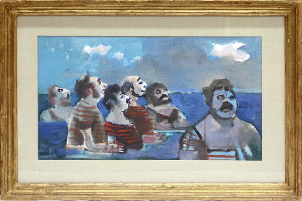 Mino Maccari "Senza titolo" olio su cartone telato cm 30x53,5 firmato in basso