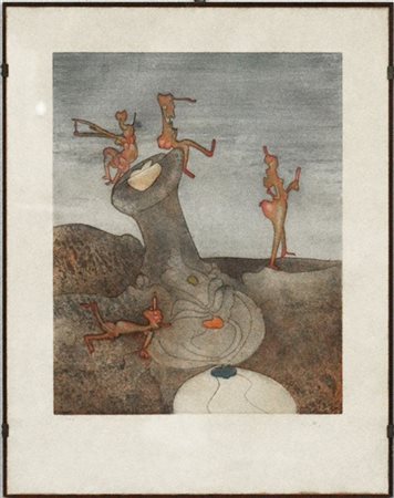 Roberto Matta "Senza titolo" 1970 acquaforte e acquatinta a colori foglio cm 63x