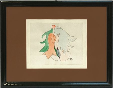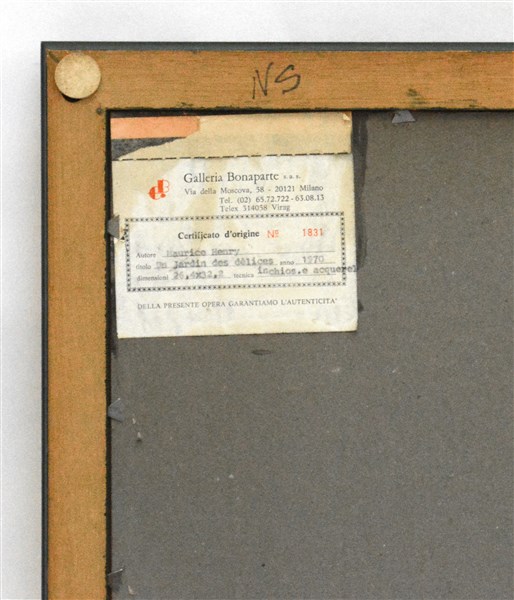 Maurice Henry "Un Jardin des dèlices" 1970 tecnica mista su carta cm 25x31,5 fir