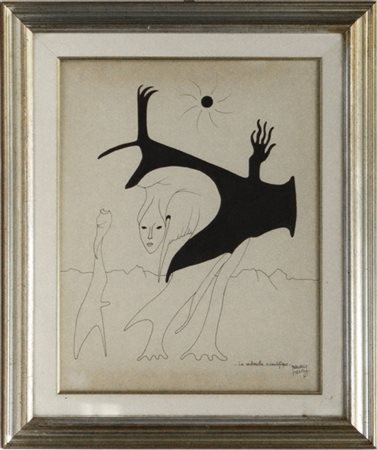Maurice Henry "La recherche scientifique" 1976 inchiostro su carta intelata cm 4