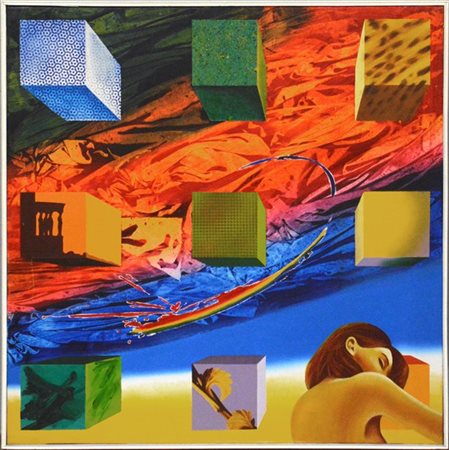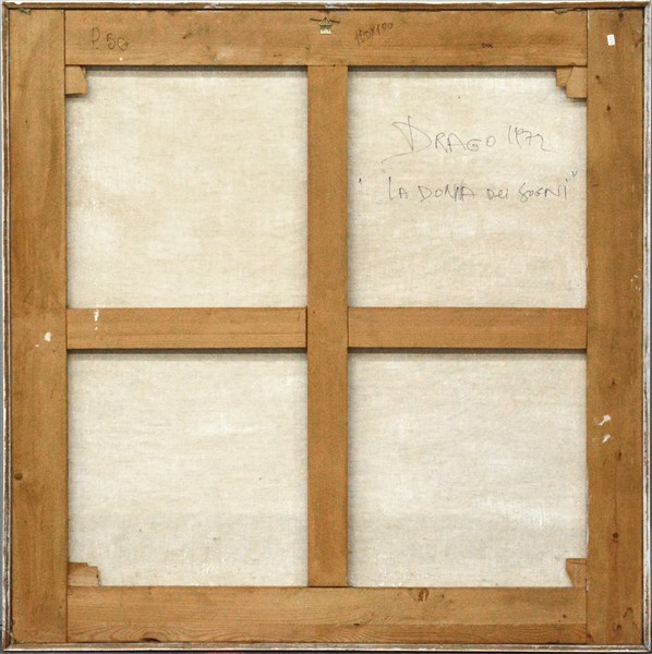Drago "La donna dei sogni" 1972 acrilico su tela cm 100x100 firmato e datato in