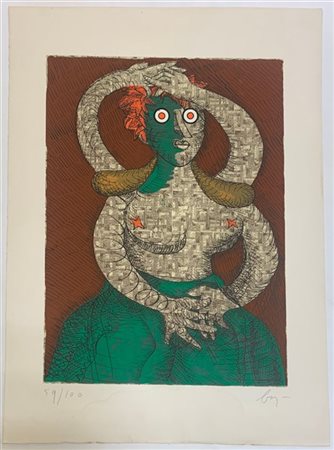 Enrico Baj "Senza titolo" serigrafia a colori cm 69,5x49,5 numerata 59/100 e fi