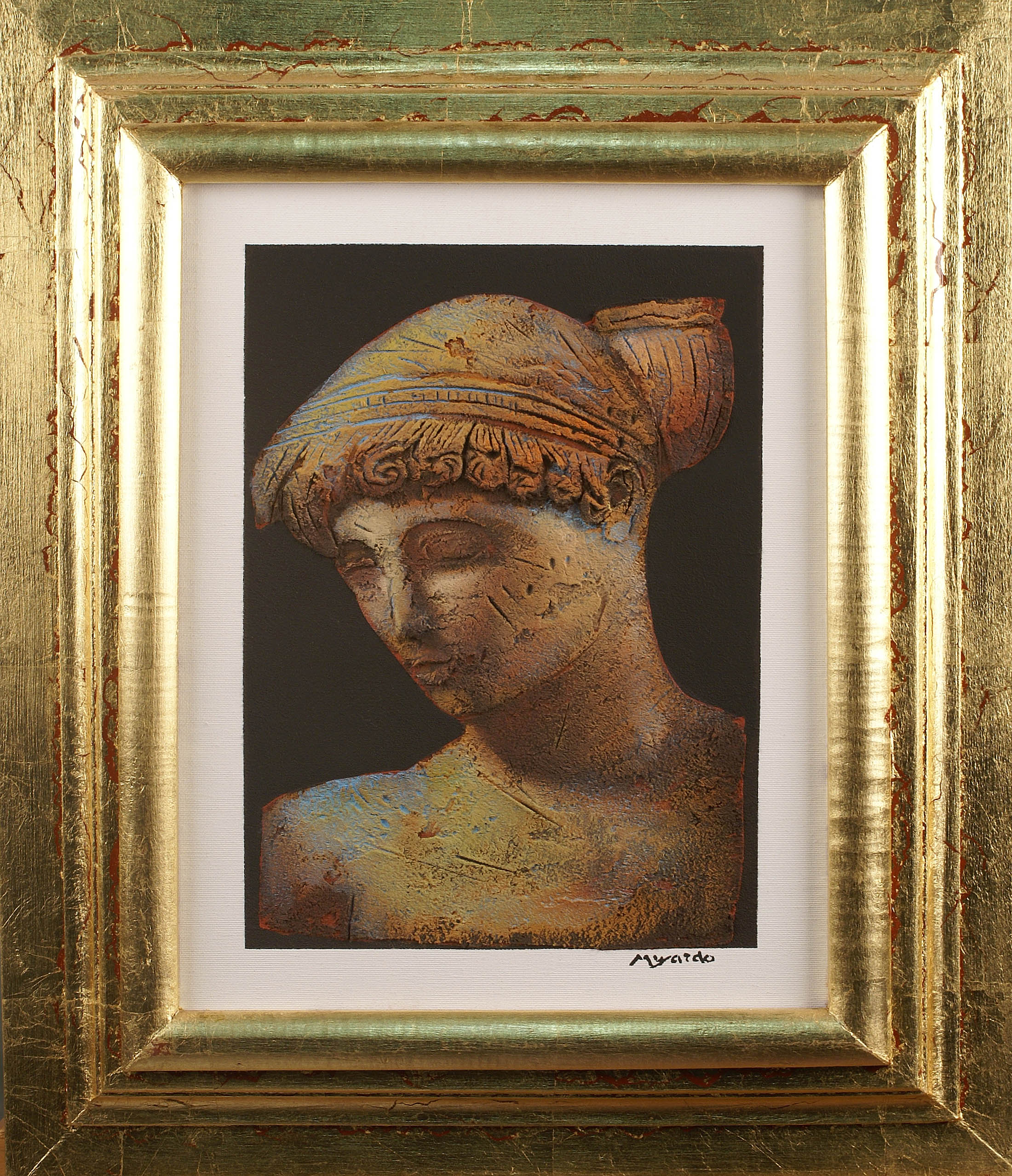 VINCENZO MUSARDO Lecce 1943 Klassica, olio polimaterico su tela, firmato in basso a destra, certificato di garanzia sul retro, entro cornice 40x30 cm.