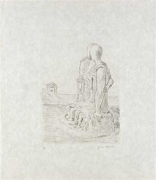 Giorgio de Chirico "L'amico consolatore" 1969 acquaforte lastra cm 35,3x25; fogl