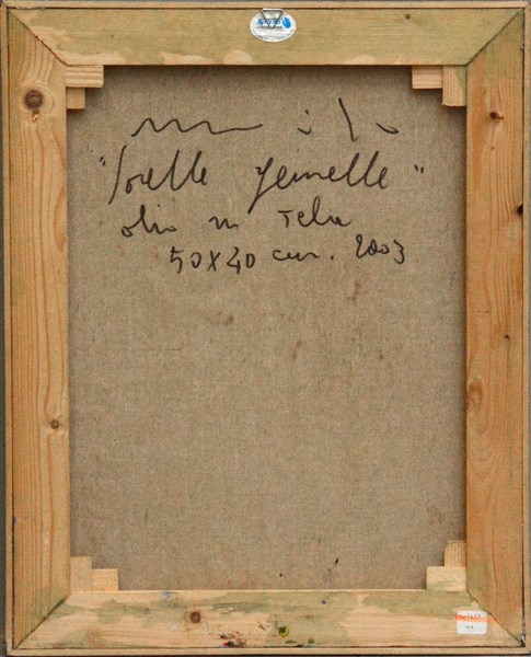 Firma indecifrata "Sorelle gemelle" 2003 olio su tela cm 50x40 firmato in basso