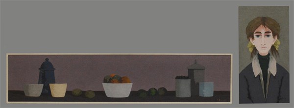due oli su tavola raffiguranti rispettivamente una natura morta e un ritratto di ragazza