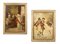 SCUOLA FRANCESE XIX Sec. Lezione di canto - Pattinaggio sul ghiaccio, coppia di oli su tavola, entro cornici in legno laccato e parzialmente dorato 47x33,5 cm.