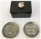 Lotto composto da una scatola in vetro nero con presa in avorio a tutto tondo con cigno e due piattini in peltro decorati in rilievo ad animali e corone (difetti)