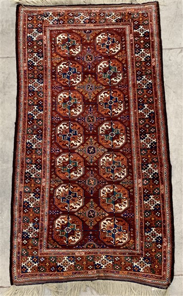 Tappeto Kamseh, Persia, fine Secolo XIX. Decoro di ispirazione turcomanna con
