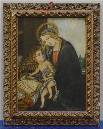 Ignoto "Copia da Botticelli. Madonna con Bambino" olio su compensato (cm 40x30) firmato in basso a destra e datato 1931, in cornice