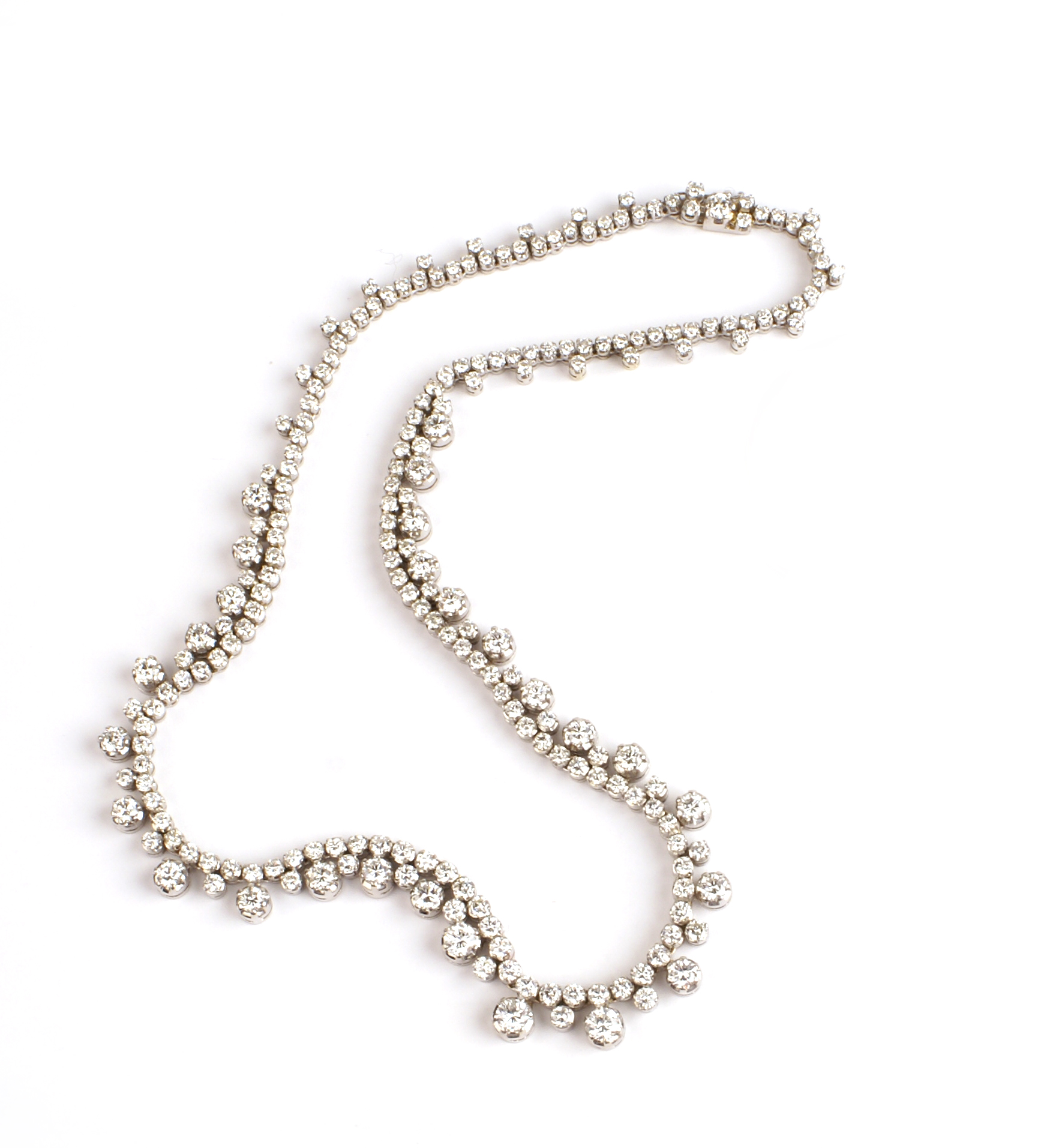 IMPORTANTE COLLIER in oro bianco 18kt con diamanti taglio brillante per ct 13...