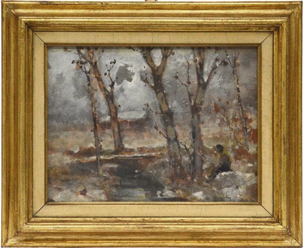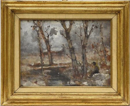 Lorenzo Gignous "Lo stagno" dipinto ad olio (cm 20x27) Firmato in basso a destra