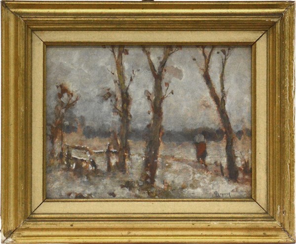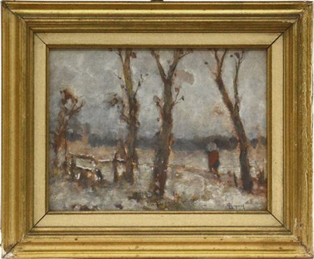 Lorenzo Gignous "Paesaggio invernale" dipinto ad olio (cm 20.5x27) Firmato in ba