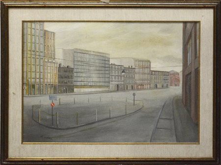 Enzo Di Guida (Napoli 1914 - MIlano 1972) "Milano, Via Pantano" 1970, olio su t