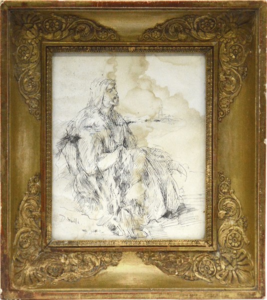 "Arabo" disegno a china su carta (cm 24x20) Firmato in basso a sinistra. Al retro: firmato, dedicato al commendator Pasquale Borselli , datato e locato Napoli . In cornice (difetti)