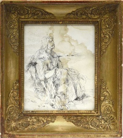 Domenico Morelli "Arabo" disegno a china su carta (cm 24x20) Firmato in basso a