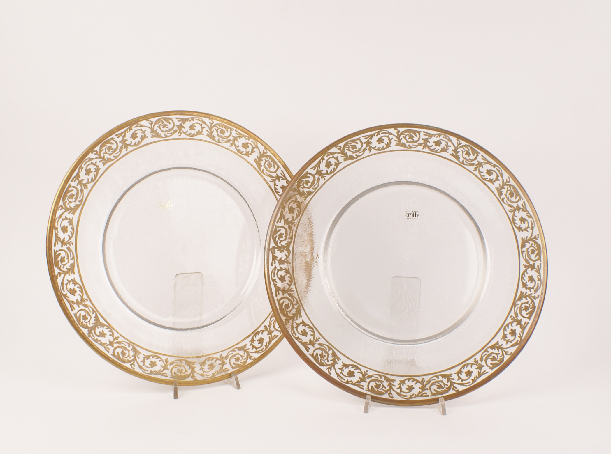 DODICI SOTTOPIATTI IN VETRO CON PROFILO DORATO d. 32 cm.