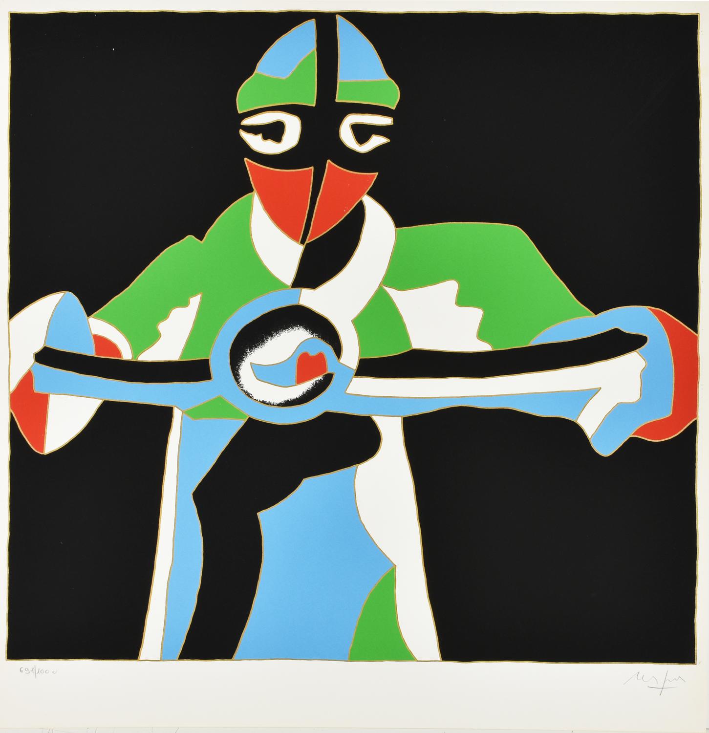 Ugo Nespolo IL MOTOCICLISTA serigrafia su carta, cm 54x50; es. 691/1000 firma