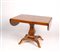 TAVOLINO A BANDELLE vecchia manifattura in betulla, piano rettangolare con due alette laterali poggiante su sostegno a balaustro sorretto da gambe a sciabola 69x137x72 cm.