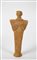 Figura femminile stilizzata stante in posizione frontale con le braccia ripiegate a sostenere il seno; il volto è dominato dal grande naso a becco d'uccello, gli occhi ed i seni sono applicati; la lunga veste scende fino al suolo.
