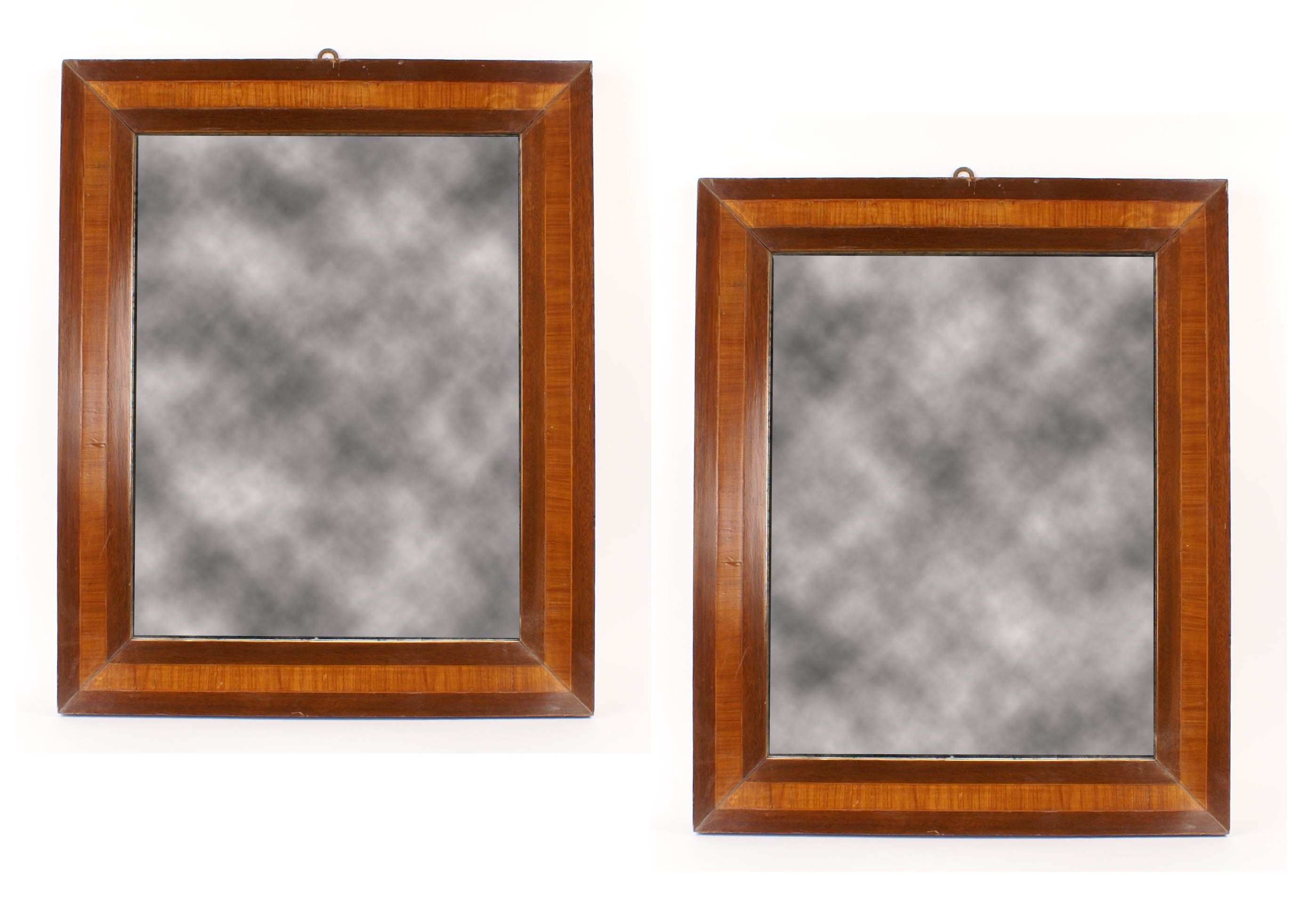 COPPIA DI SPECCHIERE IN LEGNO vecchia manifattura con cornici rettangolari in mogano filettato in bois de rose 79x64 cm.