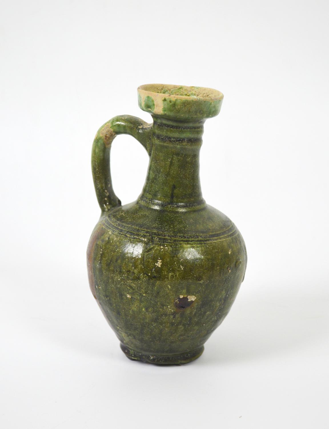 MATERIA E TECNICA: argilla depurata rosata, invetriatura verde, modellata tornio veloce