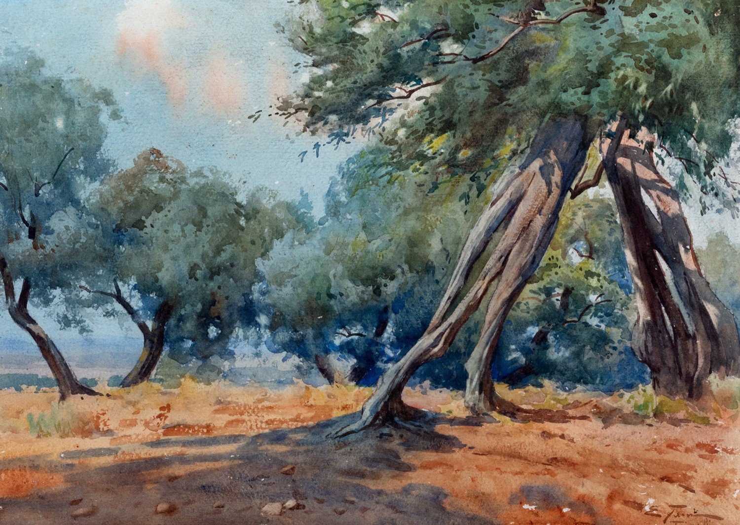 Lot 45 | Edoardo Tani (Tivoli 1880-Roma 1948) - Paesaggio con ulivi