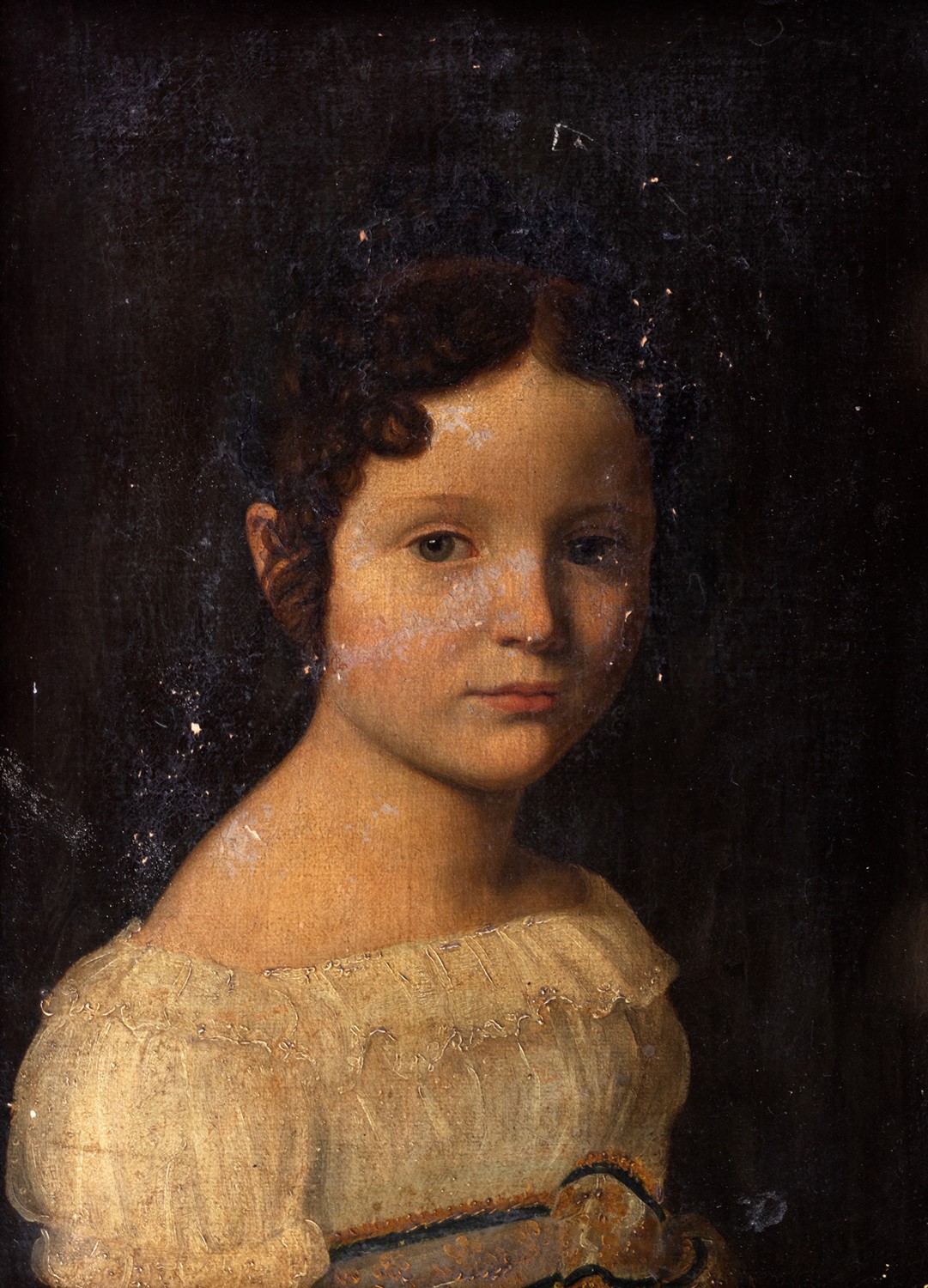 Scuola italiana, inizi secolo XIX - Ritratto di bambina a mezzo busto in abito bianco